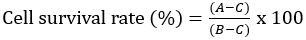 The IC50 was calculated by linear regression of the percentage survival as a function of drug concentration according to the formula [8]: