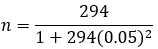 Where N represents the target population size and E the margin of error, which in this case was 0.05 (5%), corresponding to a confidence level of 95%. So, to determine the sample size, we applied the following formula: