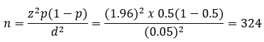 By adding 5% of the non-response rate, the total sample size was 324x5%+324 = 340