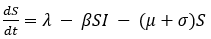 That is, at the disease-free equilibrium (S*, V*, I*, R*), we have λ - (μ+σ)S = 0, which implies: