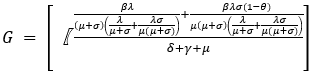 The basic reproduction number R0 is the largest eigenvalue of G. Therefore,