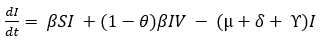 Moreover, the susceptible compartment is open and can only increase by birth at a rate of λ and also decrease at a rate of β due to progression into the infected compartment and via vaccination at σ rate, as well as natural death at a rate of μ. The infected class is populated through the progression of infected unvaccinated susceptible individuals (β) and inefficiently vaccinated (1-θ) children. The infected compartment decreases at a recovery rate of γ and by both natural (μ) and disease-related (δ) mortality. The vaccinated V group is generated by the susceptible individuals who received measles vaccination at a rate of σ, but its size reduces due to natural death and waning of the vaccine at a rate of (1-θ). The recovered R class increases by a γ rate via natural immunity after infection. However, individuals do not revert to the susceptible compartment after recovery due to life immunity in measles.